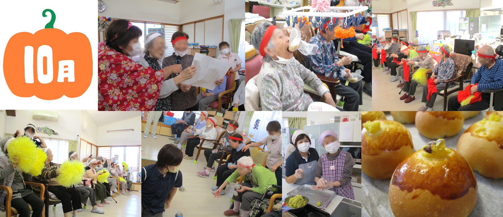 パン食い競争には、利用者さんと一緒に作った手作りのさつま芋パンを使いました。運動会後に皆さんで食べていただきました。疲れた体にあま~いパンが沁みましたね