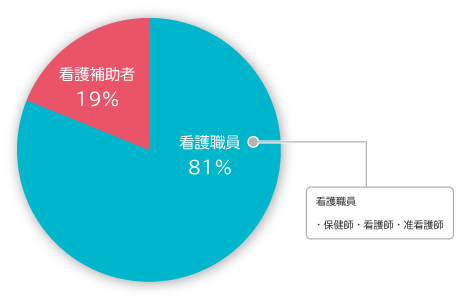 看護職員と呼ばれる看護師、准看護師、保健師だけでなく、看護補助者も多く働いています。