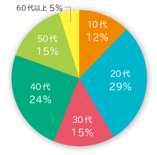 10代から60代以上の方まで幅広く働いており、子育てしながら働いている方も多く在籍しています。